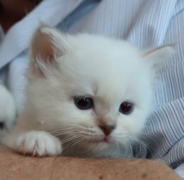 Gjennom et langt liv med dyr har vi lært verdien av ro, tålmodighet og gjensidig tillit. Da vi oppdaget rasen Hellig Birma var det som alt falt på plass. Deres milde vesen, vennlige blikk og rolige tilstedeværelser traff oss umiddelbart- og vi visste at dette var en rase vi ønsket å vie oss til.